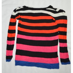 t-shirt à manches longues à rayures noir, blanche, rouge, rose, et bleu.